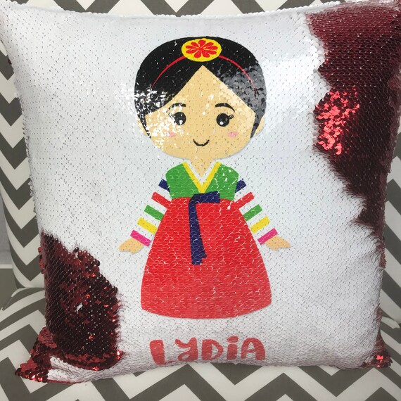 Buy Korean Girl Design Flip Sequin Pillow Personalized Name Online In India Etsy